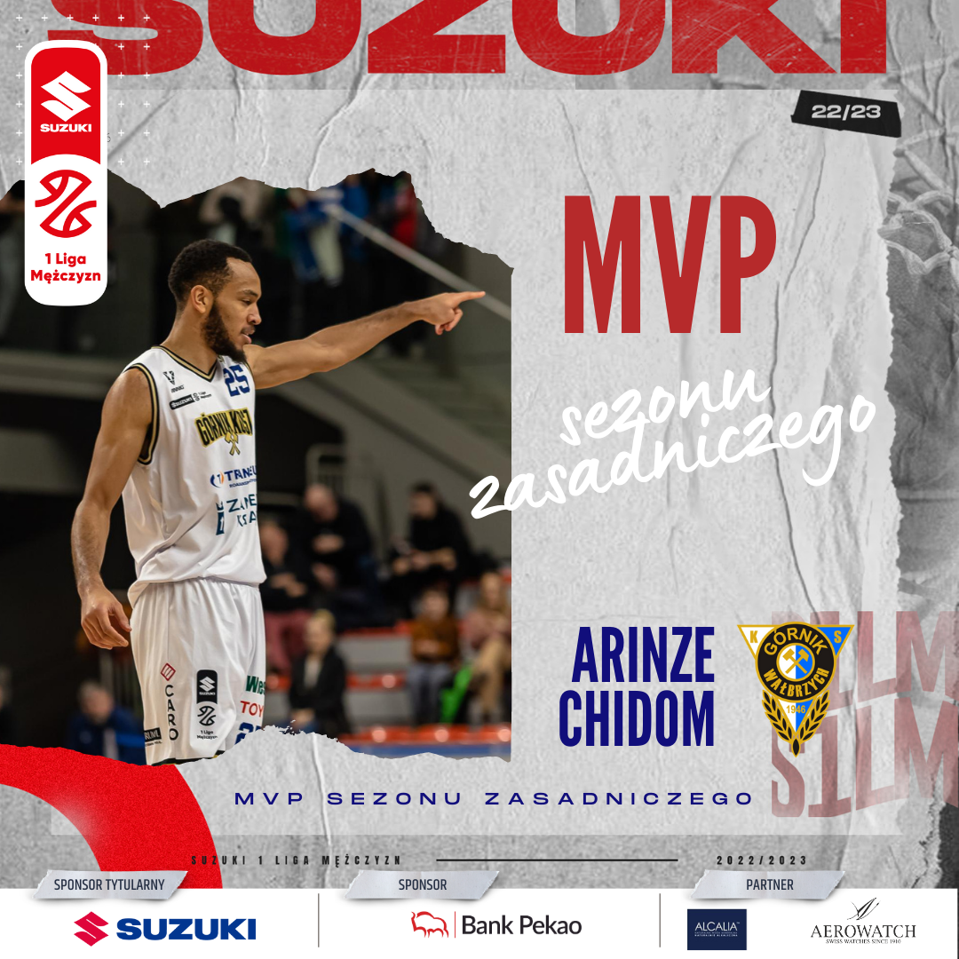 Arinze Chidom z Górnika Trans.eu Zamek Książ Wałbrzych został wybrany przez trenerów MVP rundy zasadniczej Suzuki 1 Ligi Mężczyzn sezonu 2022/2023.