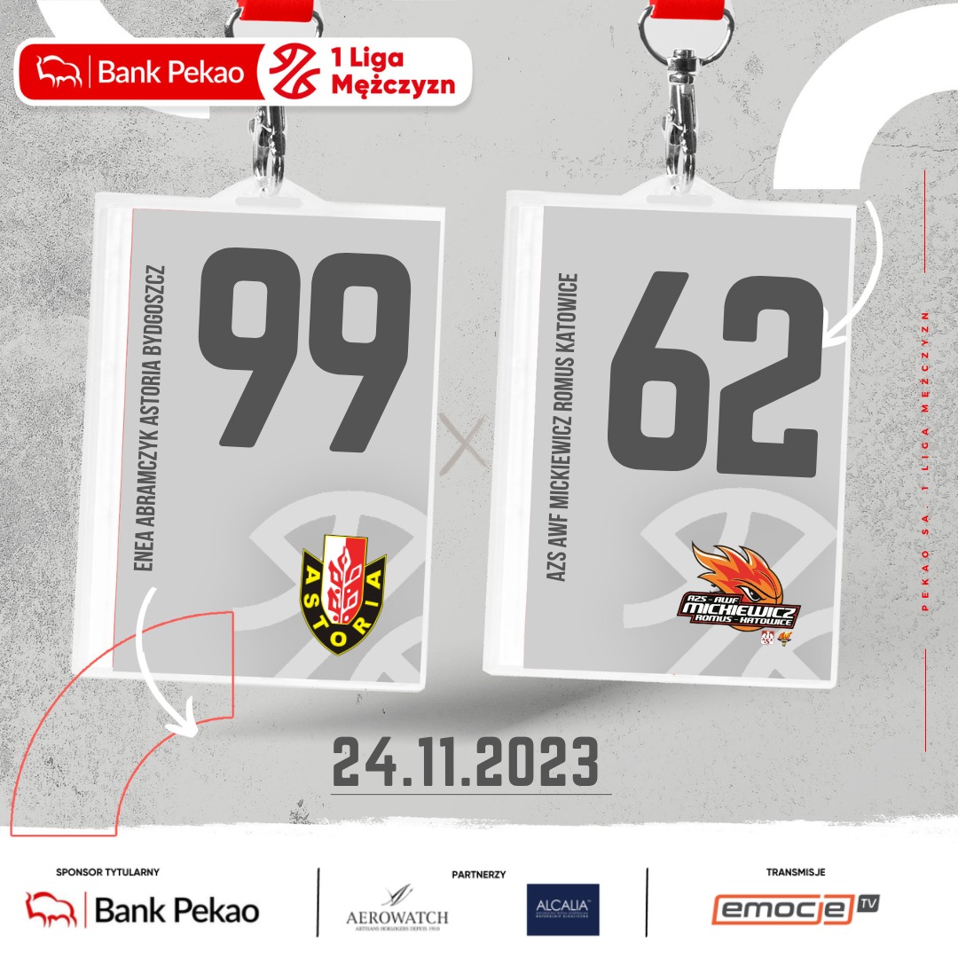 Spadkowicz z ORLEN Basket Ligi Enea Abramczyk Astoria wyraźnie lepsza od beniaminka Pekao S.A. 1 Ligi Mężczyzn AZS AWF Mickiewicz Romus. Bydgoszczanie na otwarcie 12. kolejki zwyciężyli 99:62, wyraźną przewagę uzyskując już do przerwy. 21 punktów dla gospodarzy uzyskał Filip Małgorzaciak.