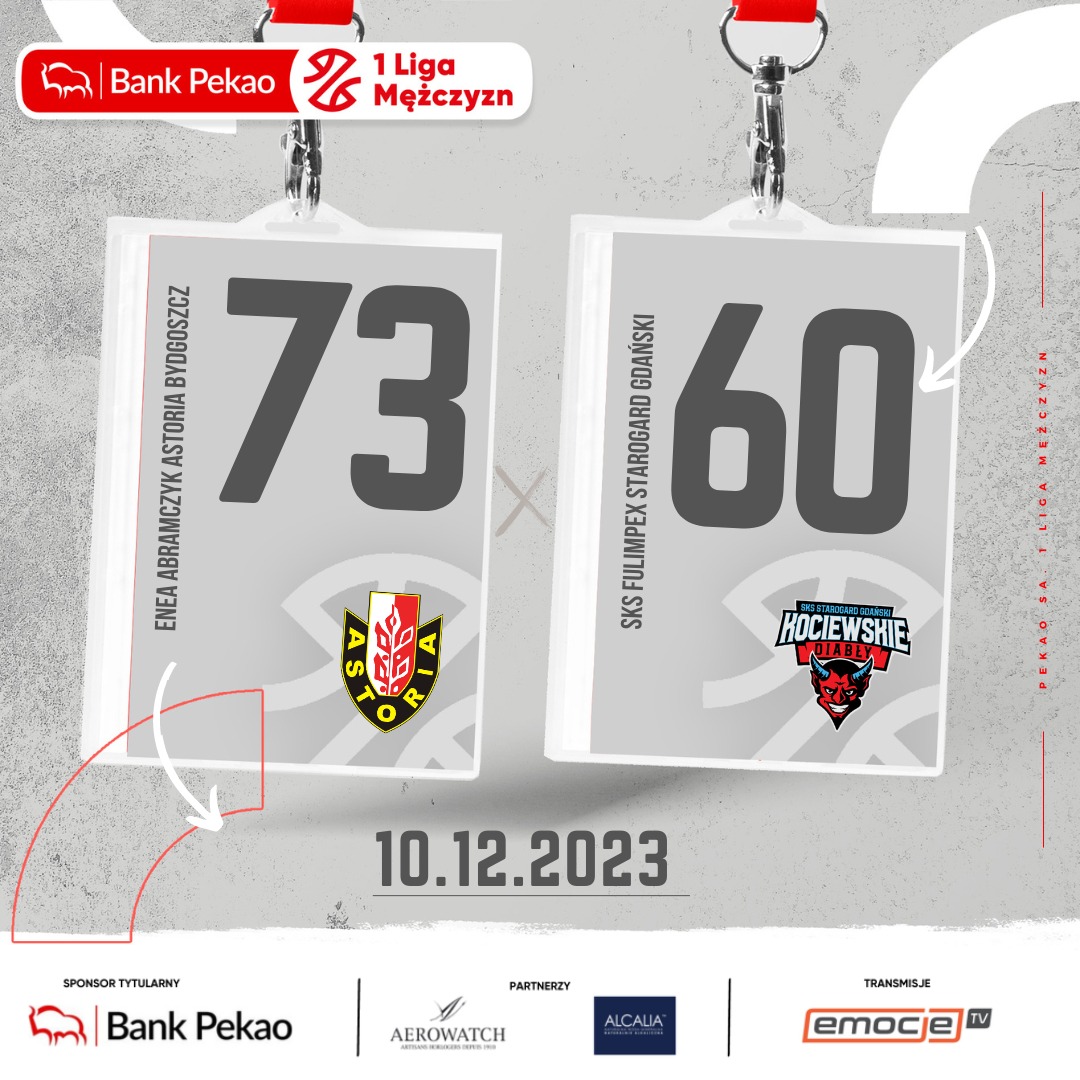 Dobrą passę podtrzymali koszykarze Enea Abramczyk Astorii, którzy na własnym parkiecie w meczu na szczycie Pekao S.A. 1 Ligi Mężczyzn zwyciężyli SKS Fulimpex. Bydgoszczanie wygrali piąte spotkanie z rzędu i awansowali na drugie miejsce w tabeli. 28 punktów dla gospodarzy uzyskał były zawodnik klubu z Kociewia Filip Małgorzaciak.