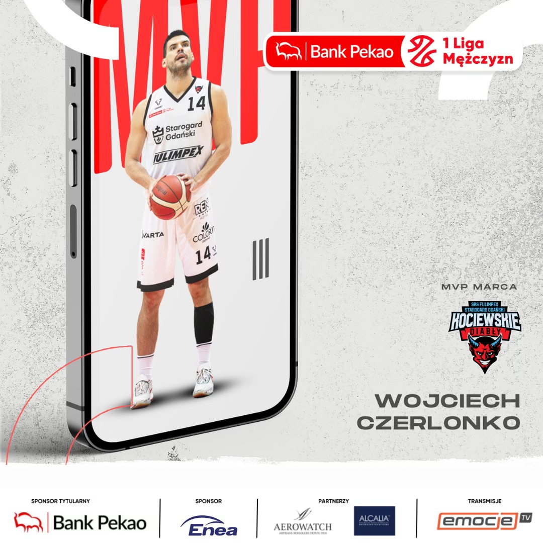 Skrzydłowy SKS Fulimpex Starogard Gdański Wojciech Czerlonko został wybrany najlepszym zawodnikiem Bank Pekao S.A. 1 Ligi Mężczyzn marca. W nagrodę koszykarz otrzyma wysokiej klasy zegarek marki Aerowatch