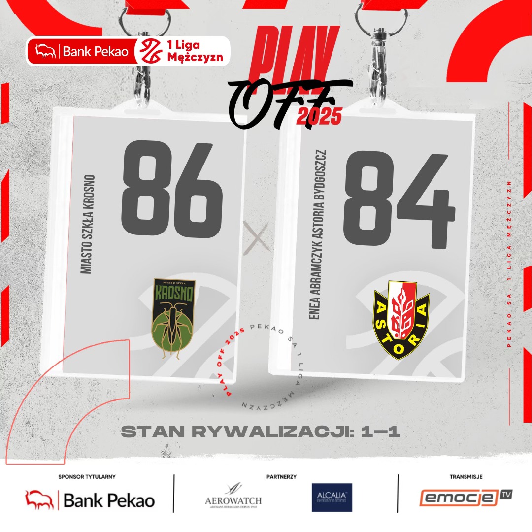 Mecz numer dwa finału Pekao S.A. 1 Ligi Mężczyzn dla Miasta Szkła Krosno. Gospodarze na początku drugiej kwarty prowadzili już różnicą 17 punktów, ale do ostatniej akcji meczu drżeli o końcowy wynik. 18 punktów i 7 zbiórek Michała Chraboty. Kolejne mecze 17 i 18 maja w Bydgoszczy.