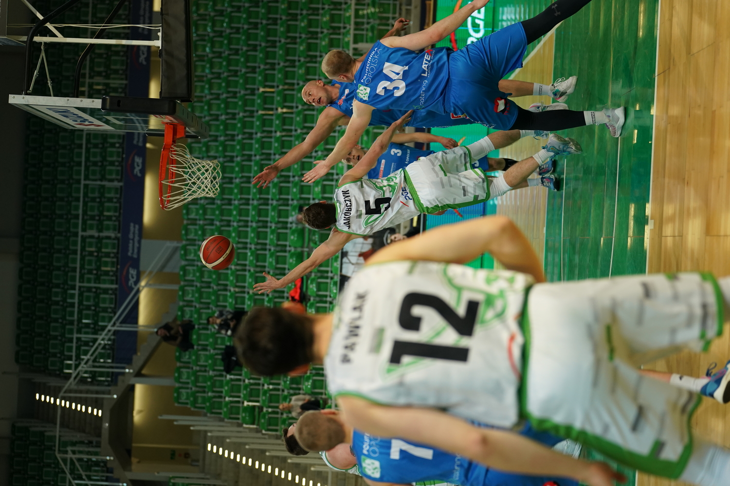 | Filip Pruefer (7) | wykonywany rzut za 2 | Hubert Pabian (5.8) |