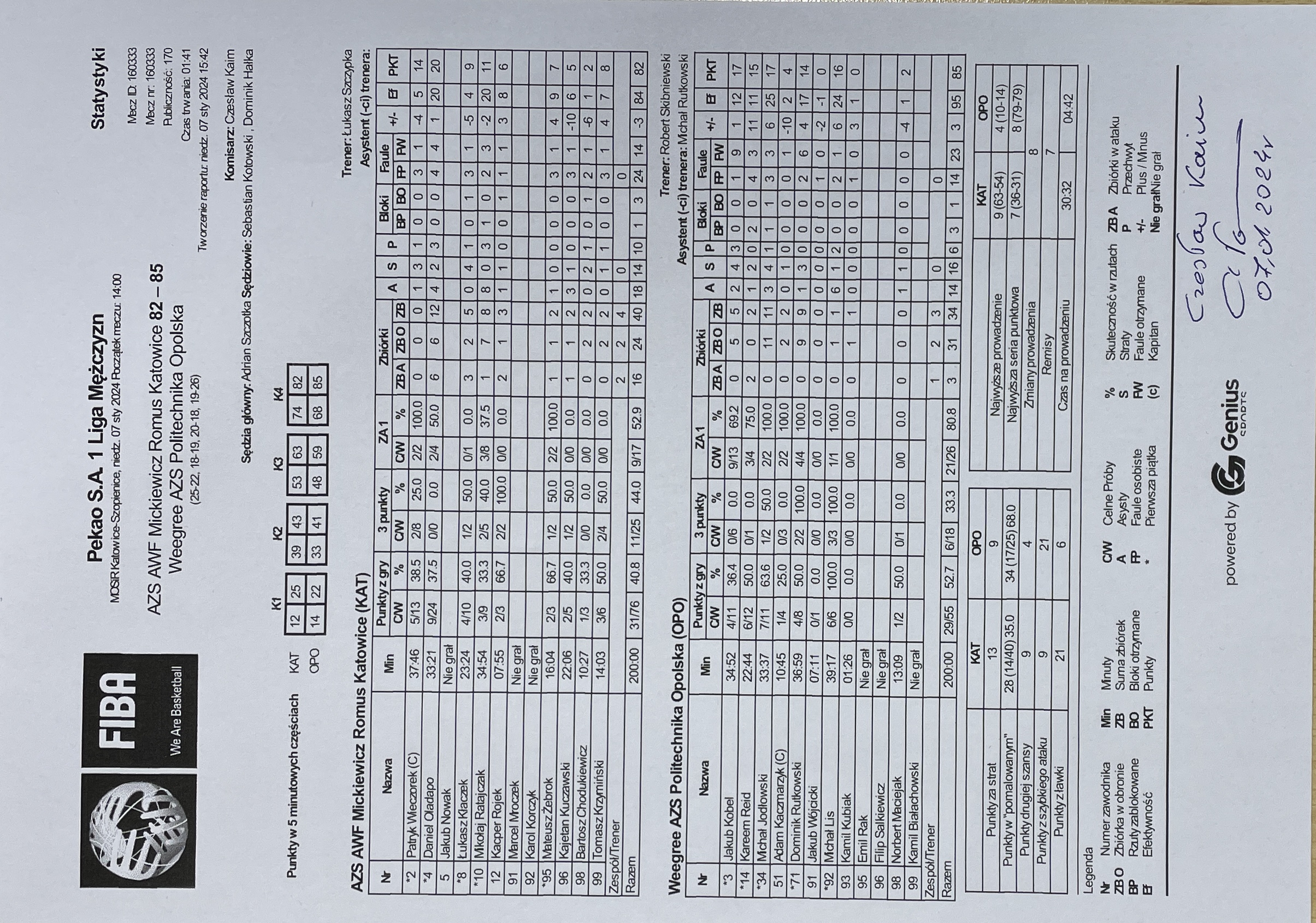 Sędziowie: Adrian Szczotka, Sebastian Kotowski, Dominik Hałka | Komisarz: Czesław Kaim