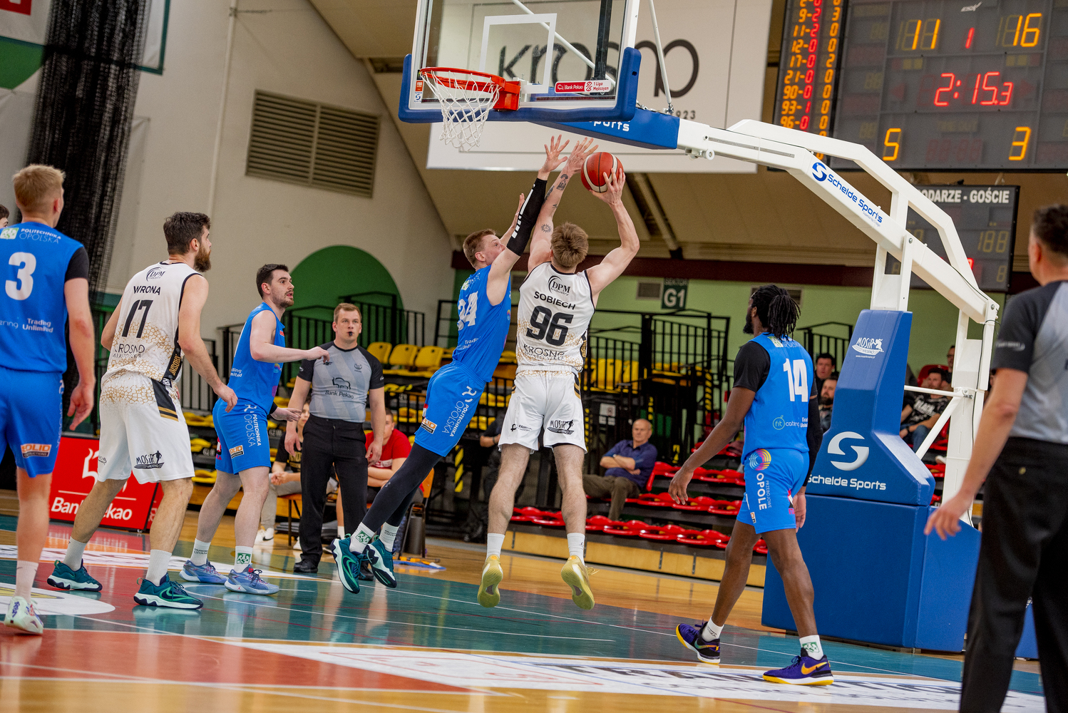 15, O. Hlebowicki, niecelny lay-up |