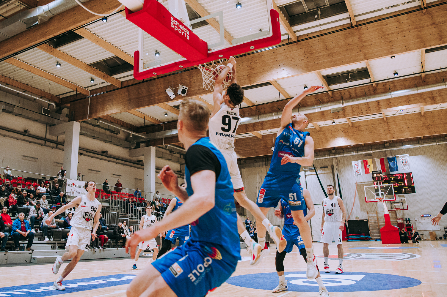 91, J. Wójcicki, celny lay-up |