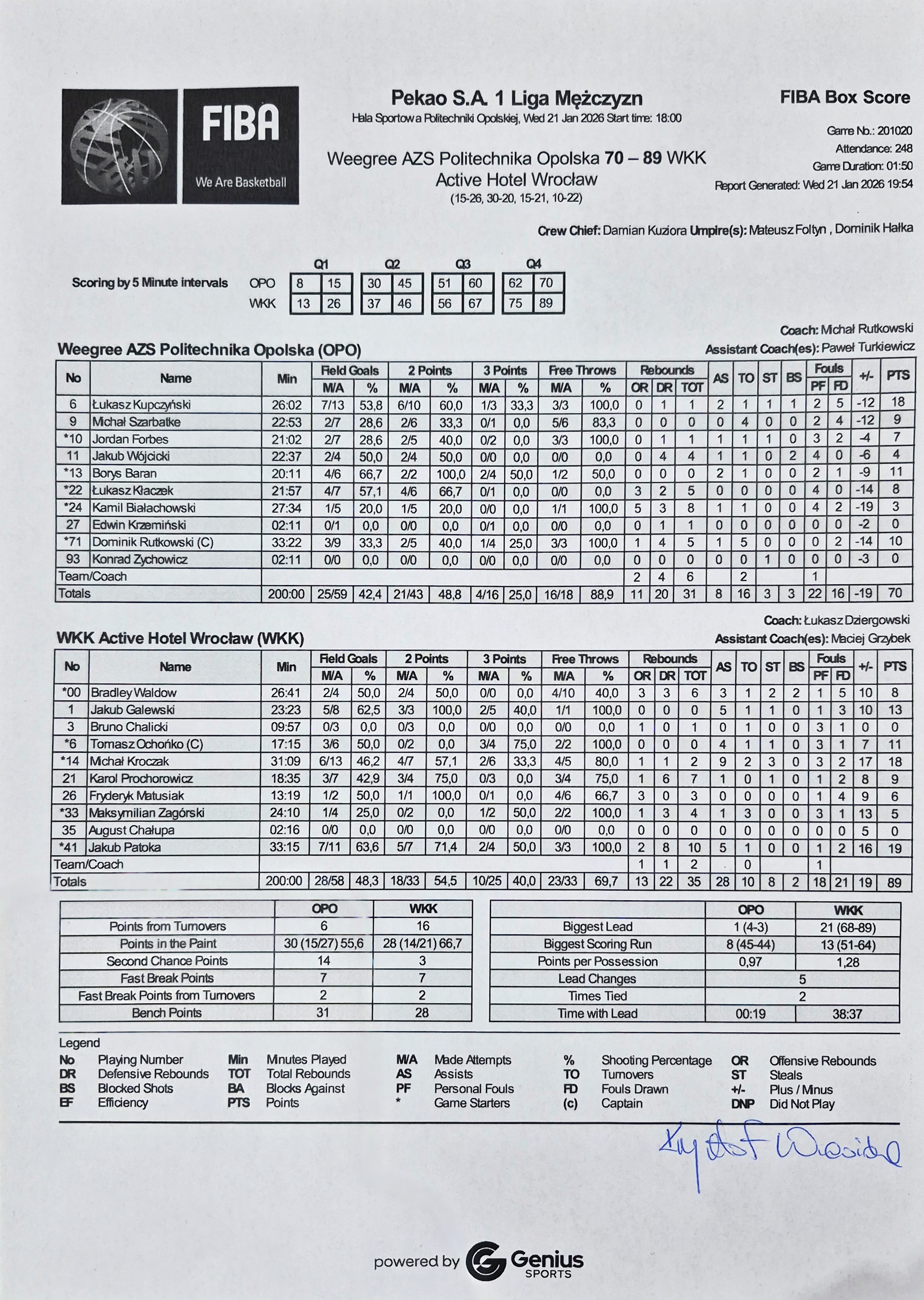 26, F. Matusiak, niecelny z wyskoku za 3 |