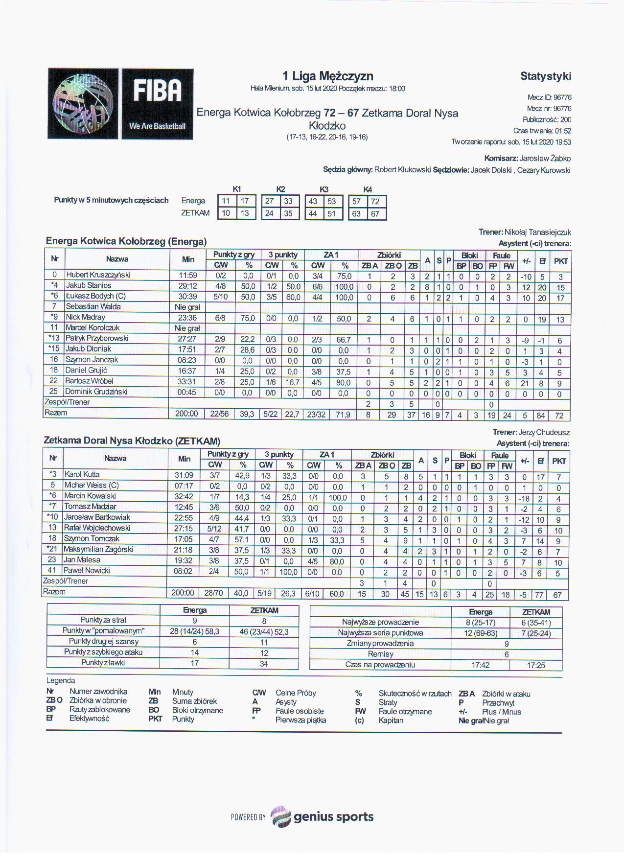 Sędziowie: Robert Klukowski, Jacek Dolski, Cezary Kurowski | Komisarz: Jarosław Żabko